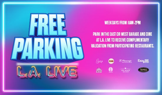 Weekdays from 11AM to 2PM only, you can park for free when you dine at a participating L.A. LIVE restaurant.